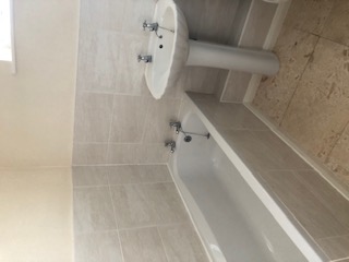 Fully fitted kitchen, downstairs WC and storage room, good sized living room. Upstairs there are 2 double bedrooms and 1 single, bathroom with bath, WC, sink and separate shower cubicle.