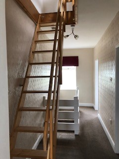 There are three bedrooms on the next floor, a modern bathroom with shower over bath, sink and WC and then a large storage room on the third floor.