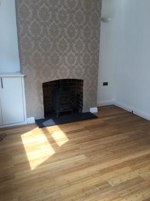 Living room, fitted modern kitchen, 1 double and 1 single bedroom on the second floor and then 1 large bedroom to the third floor, bathroom with shower over bath, sink and WC.